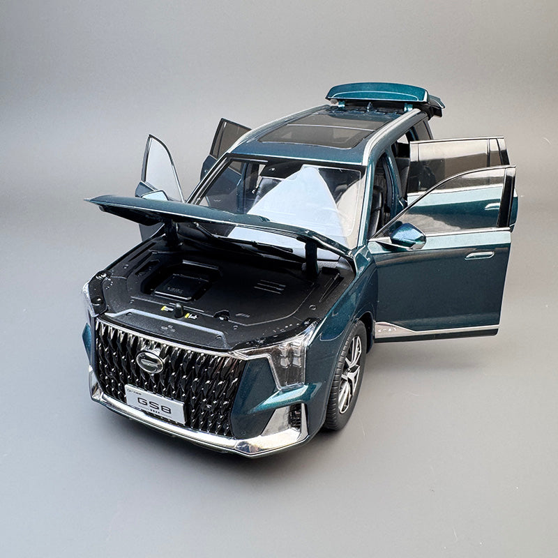 The Trumpchi GS8 is GAC’s flagship mid-size SUV, first launched in 2016 and redesigned in 2021 with a longer, wider body and wheelbase for enhanced stability. The ZX trim adds a tilt-and-slide panoramic sunroof, power-folding mirrors, and luxury interior accents—features faithfully miniaturized in this 1:18 scale model with realistic sunroof detailing . Enthusiast communities praise its blend of style and substance, noting the GS8’s commanding road presence and refinement.