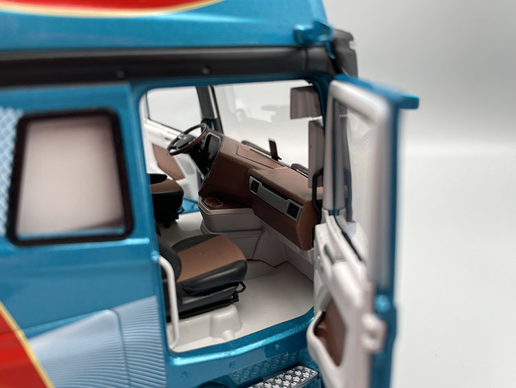 【Function description】 The steering wheel can be linked to the front wheel, the front cover can be opened, the hydraulic rod is supported, the door on both sides of the cab can be opened, the tool box door on both sides can be opened, the front can be lifted, the rear wheel has the shock absorber function, the inner roof of the skylight can slide back and forth, and the rotation shaft of the rear wheel can be linked